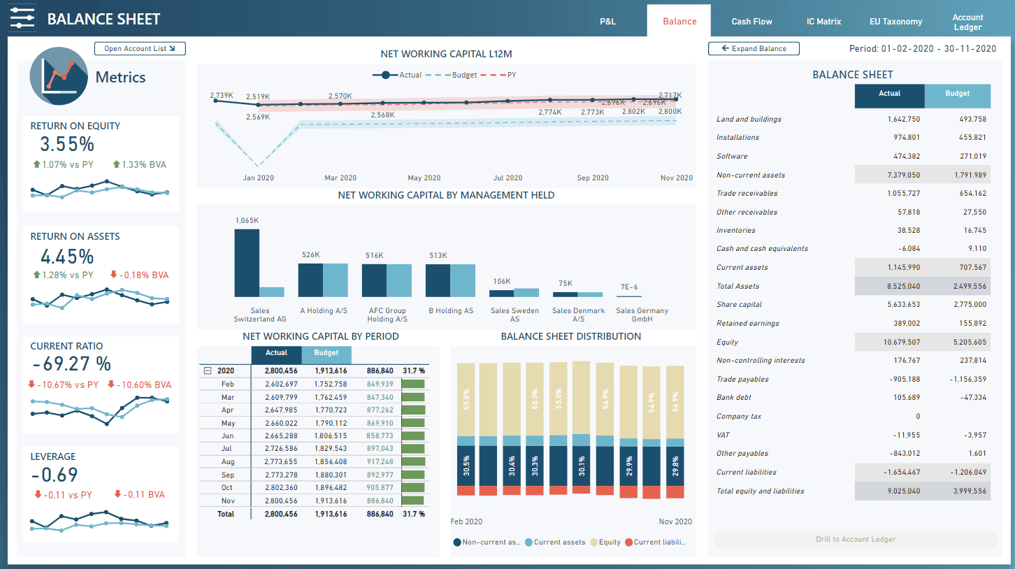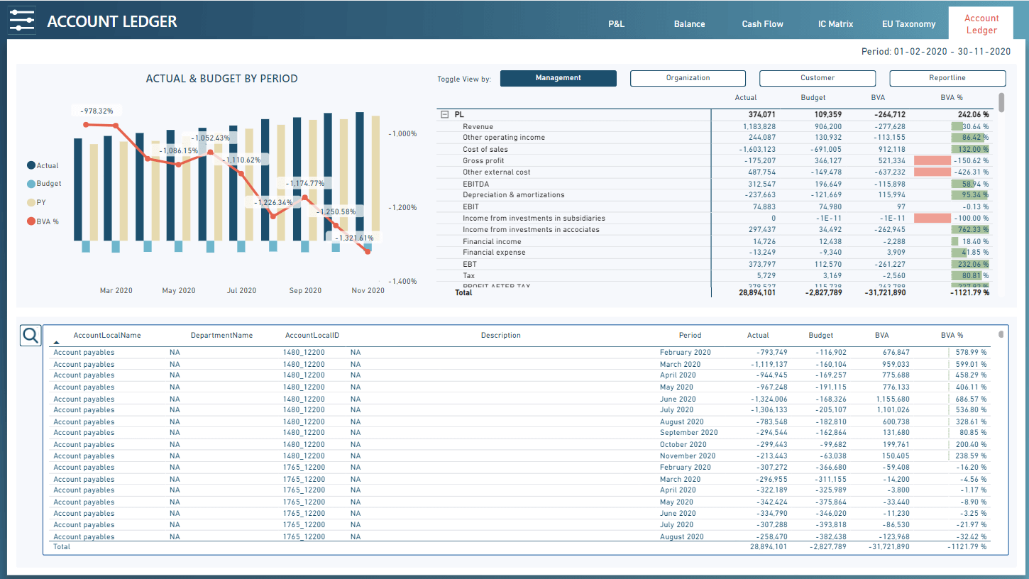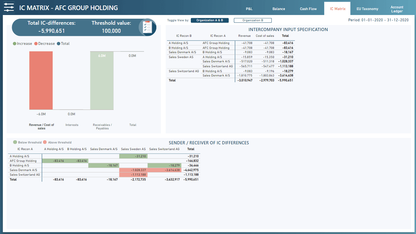 With AFC Consolidation you can achieve flexibility in vertical analysis as demand for data changes by establishing relevant dimensions and allocation matrixes, including possibilities of drill through.